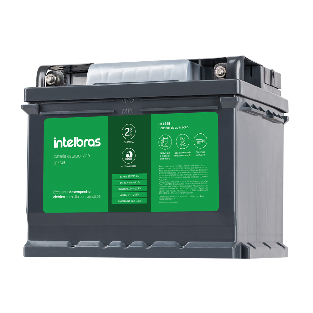 Com tensão de 12Vdc e capacidade de 45Ah, a EB 1245 é ideal para garantir ampliar a autonomia de nobreaks em sistemas de controle de acesso, segurança,...