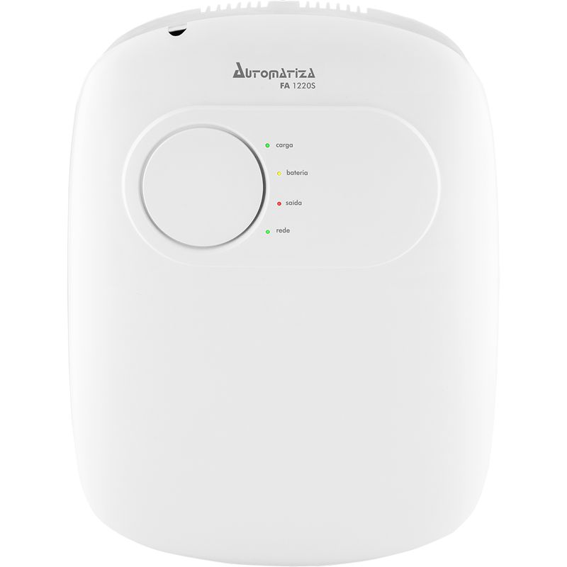 O gabinete plástico na cor branca, adaptável a qualquer ambiente, possui LEDs indicativos de